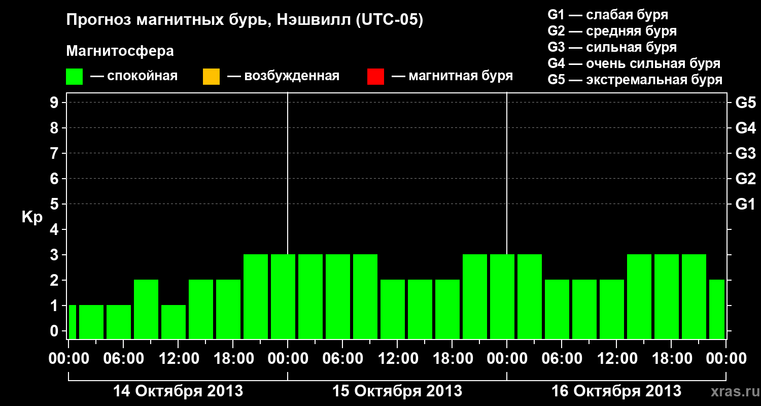 Прогноз магнитных бурь в Нэшвилле — 14 октября 2013 года