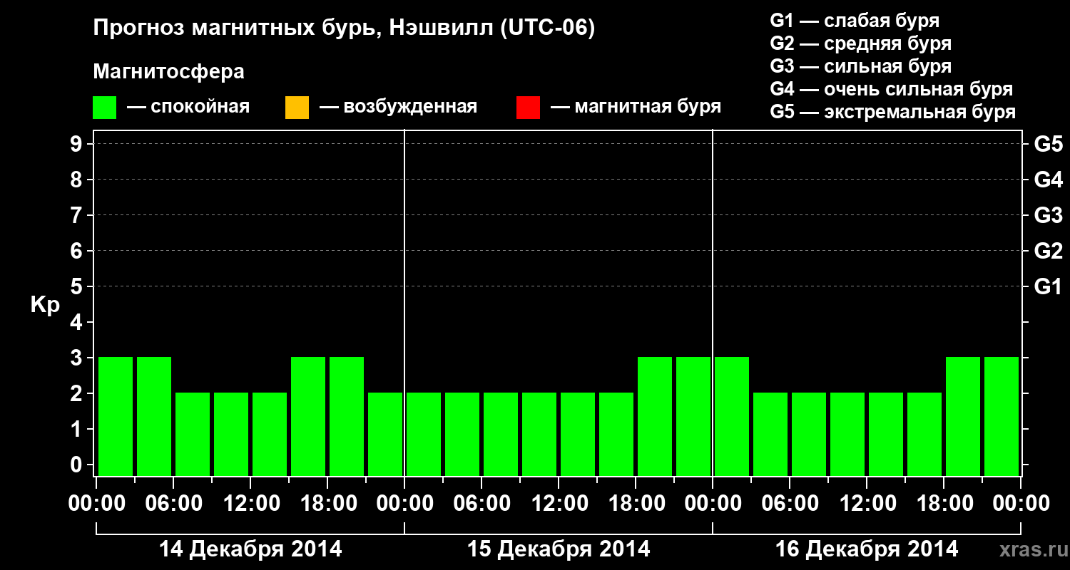 Прогноз магнитных бурь в Нэшвилле — 14 декабря 2014 года