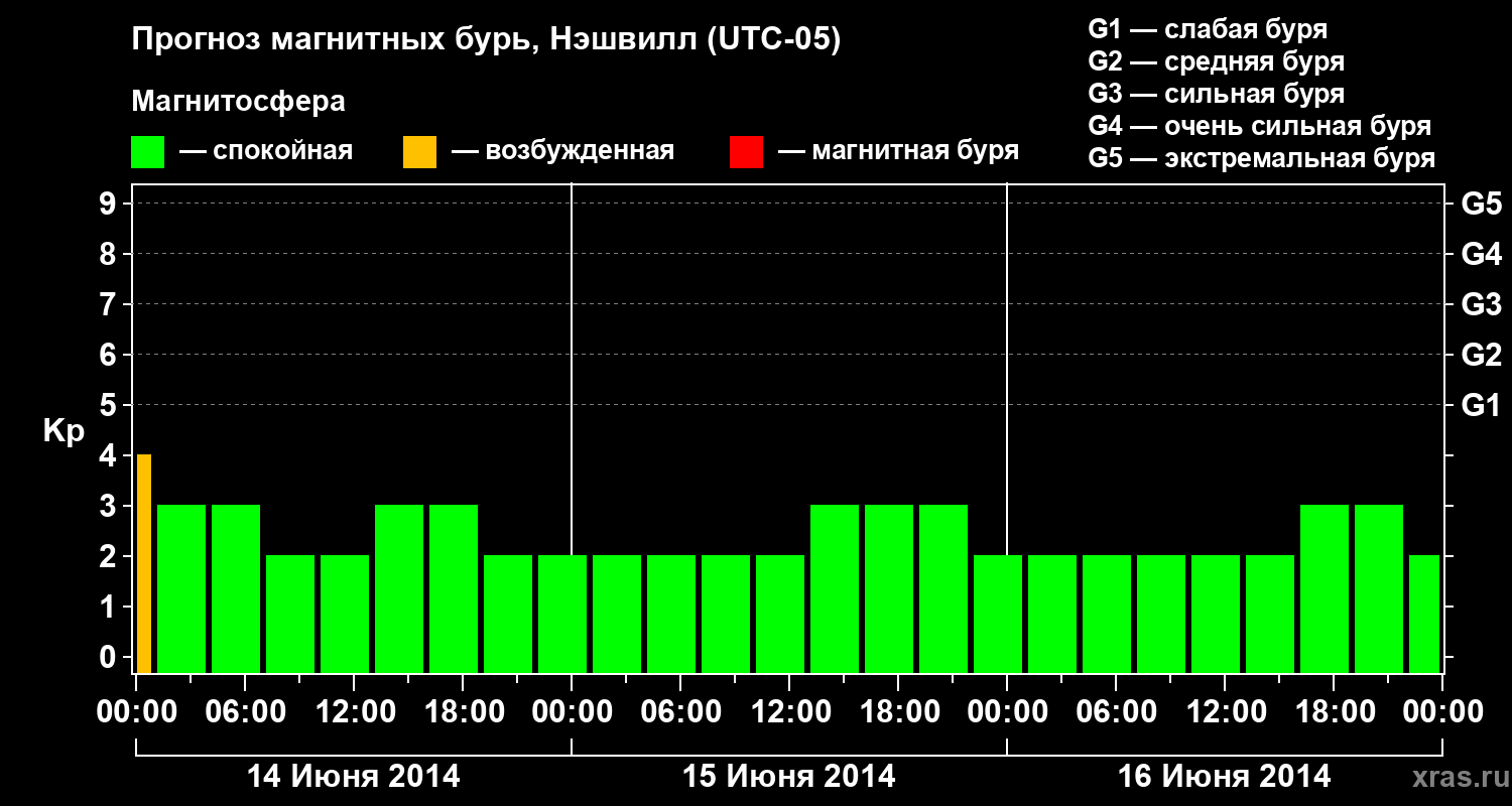 Прогноз магнитных бурь в Нэшвилле — 14 июня 2014 года