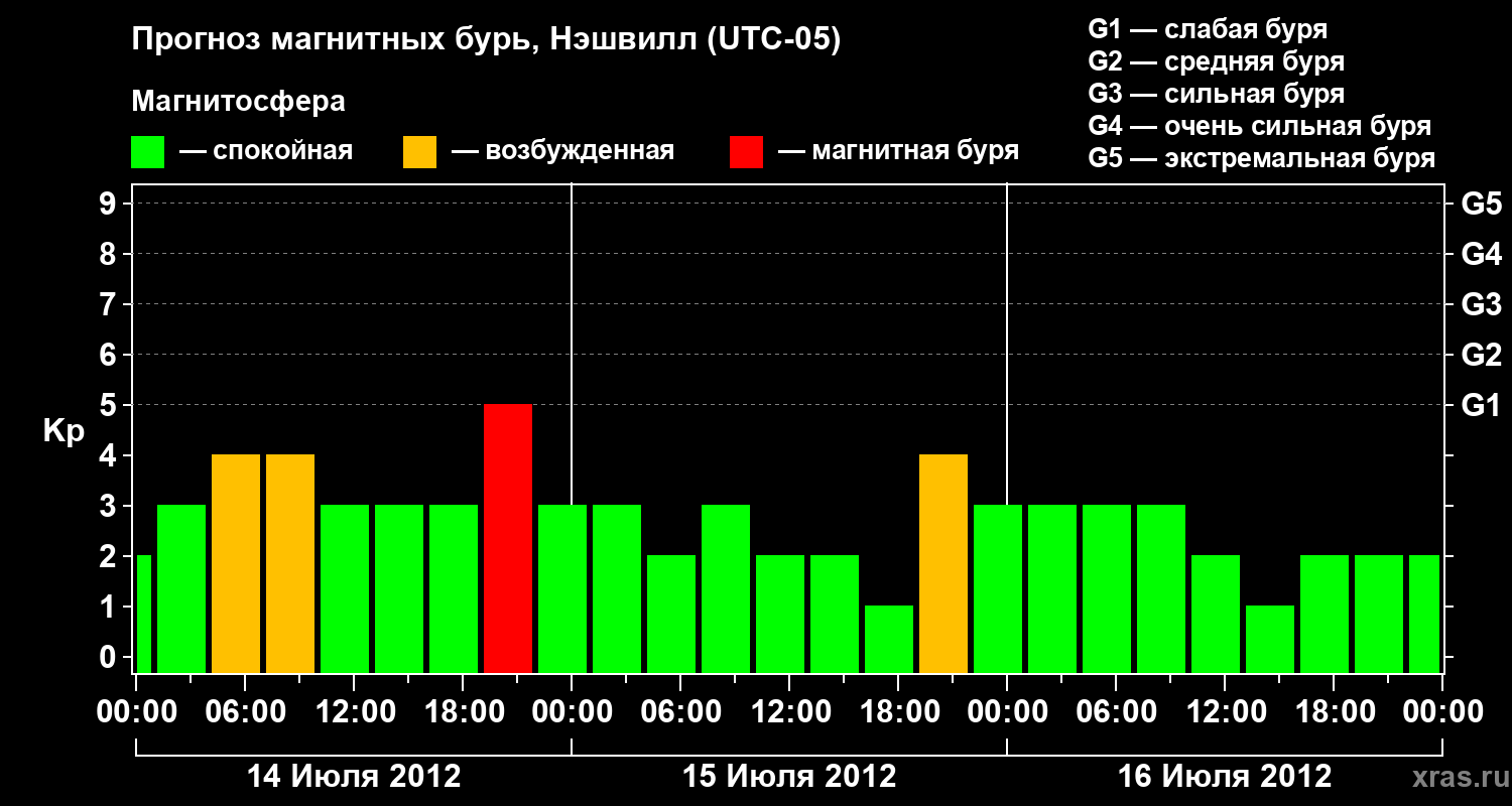 Прогноз магнитных бурь в Нэшвилле — 14 июля 2012 года