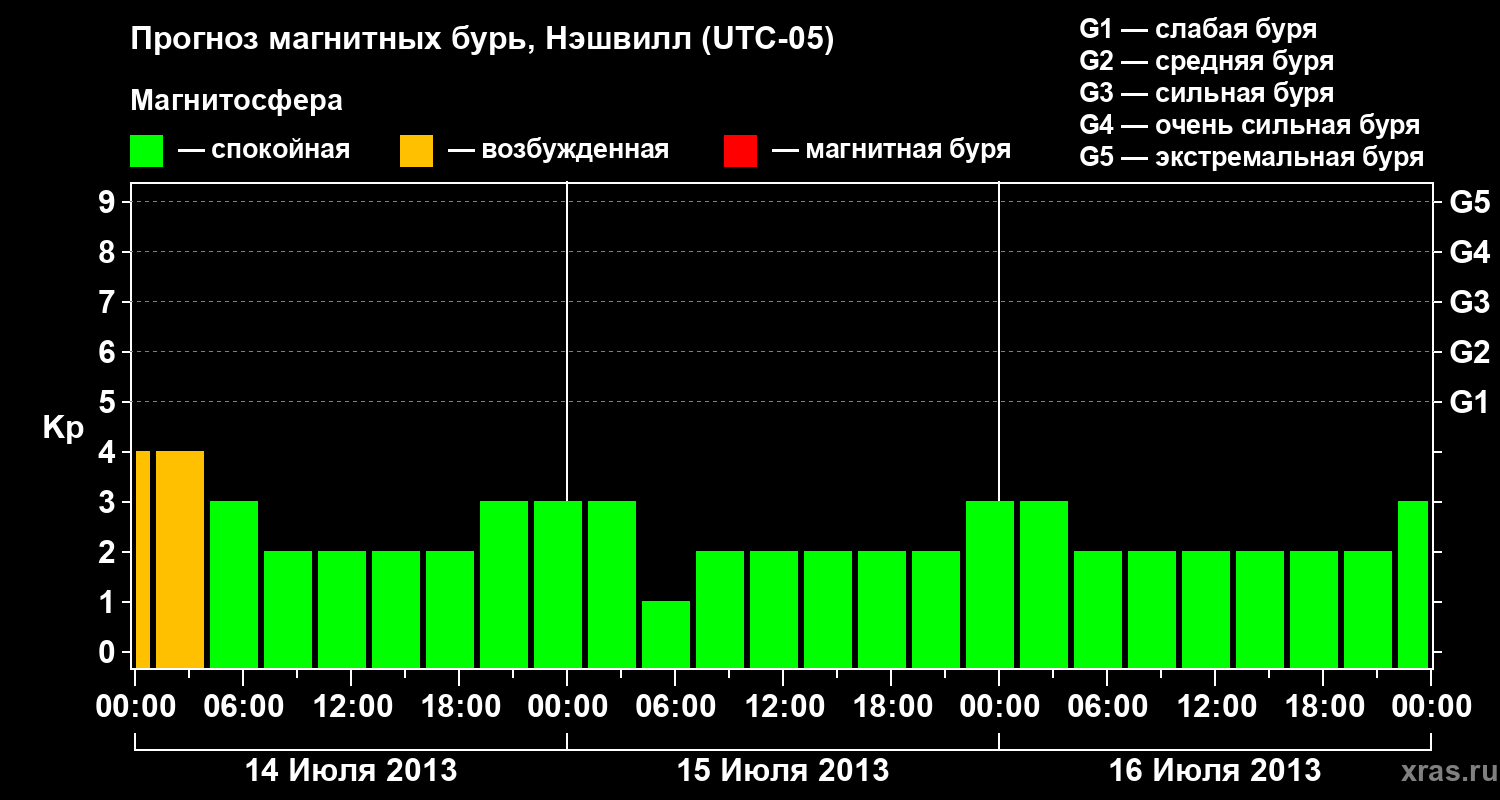 Прогноз магнитных бурь в Нэшвилле — 14 июля 2013 года