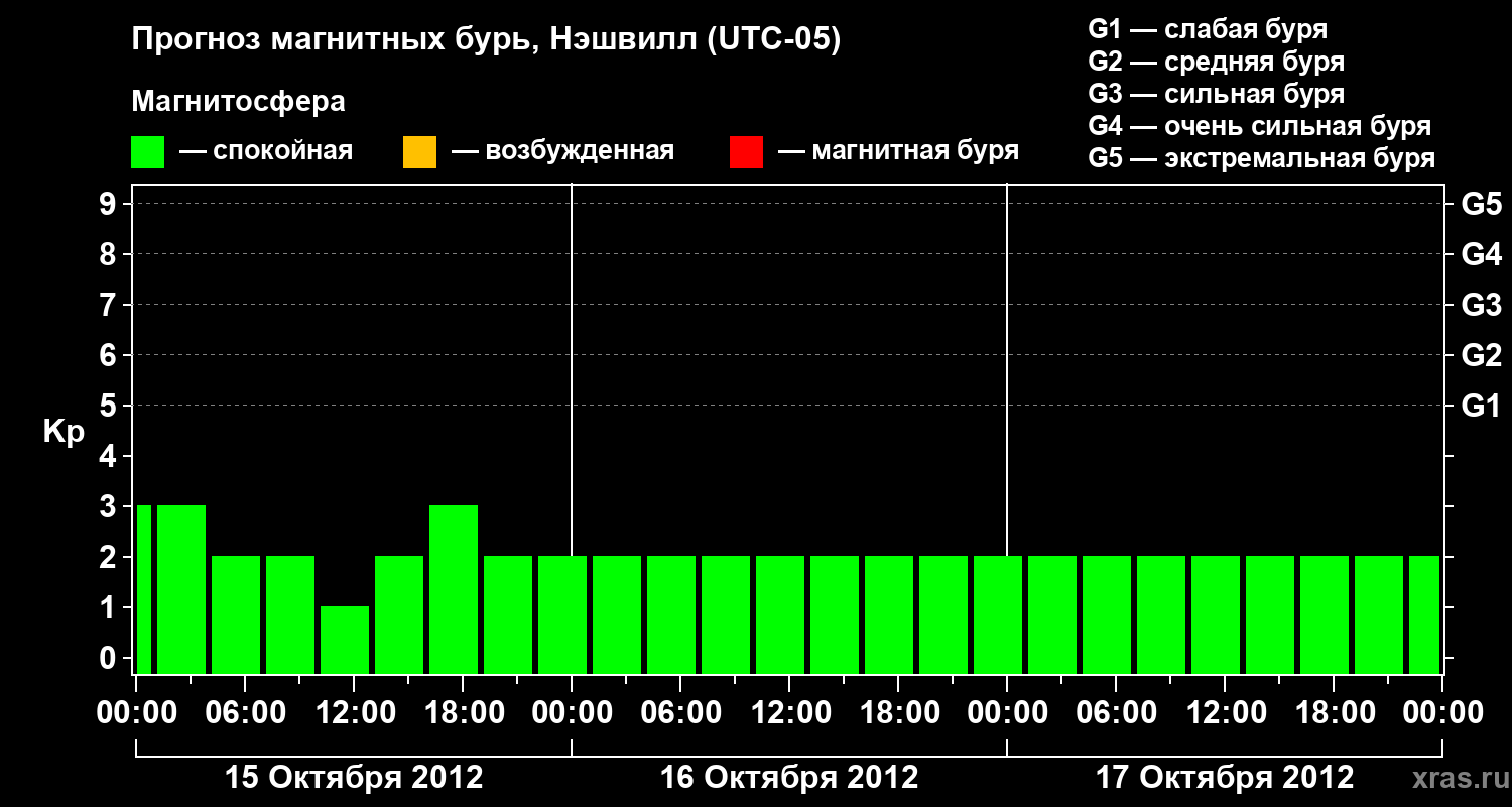 Прогноз магнитных бурь в Нэшвилле — 15 октября 2012 года