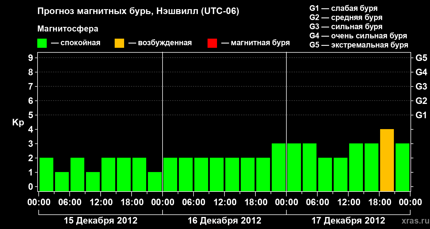 Прогноз магнитных бурь в Нэшвилле — 15 декабря 2012 года