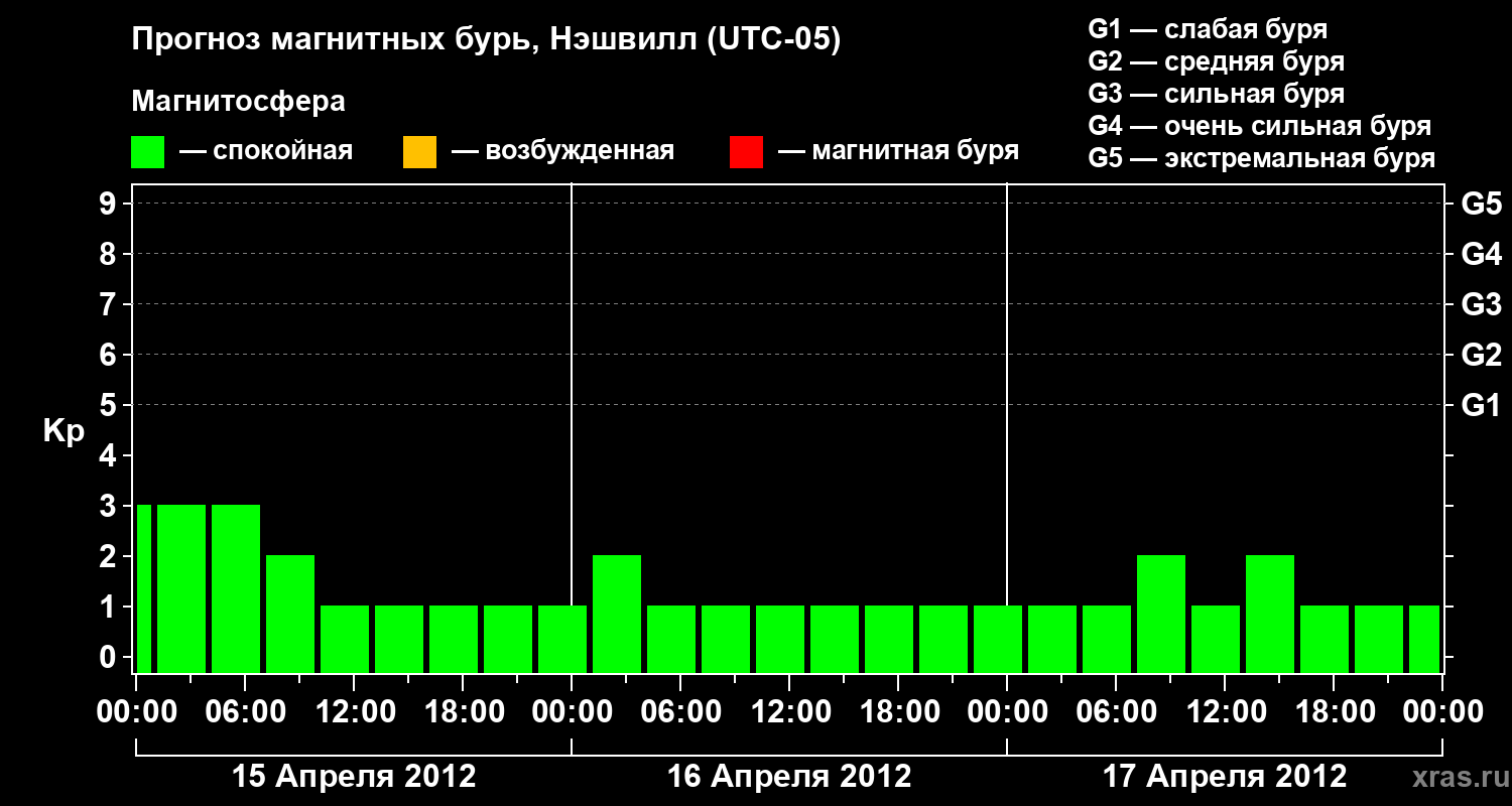 Прогноз магнитных бурь в Нэшвилле — 15 апреля 2012 года