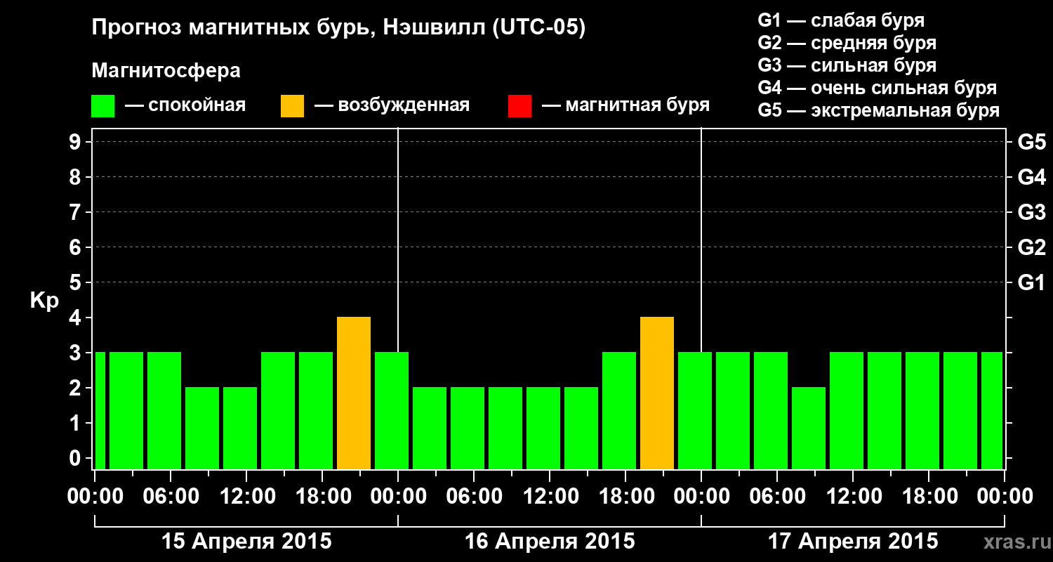 Прогноз магнитных бурь в Нэшвилле — 15 апреля 2015 года