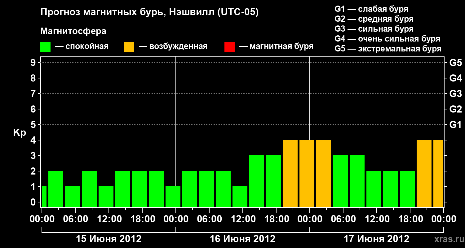 Прогноз магнитных бурь в Нэшвилле — 15 июня 2012 года