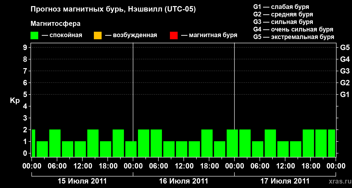 Прогноз магнитных бурь в Нэшвилле — 15 июля 2011 года