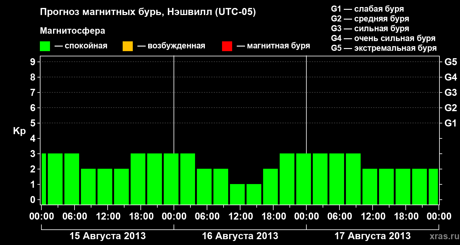 Прогноз магнитных бурь в Нэшвилле — 15 августа 2013 года