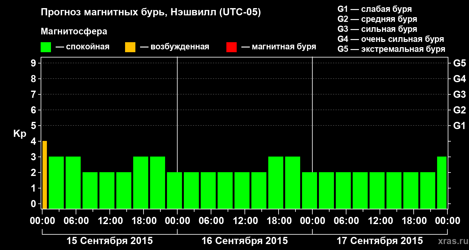 Прогноз магнитных бурь в Нэшвилле — 15 сентября 2015 года