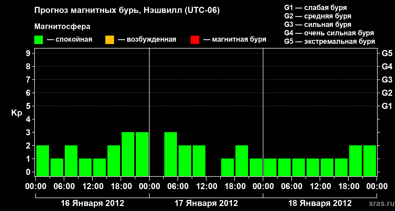 Прогноз магнитных бурь в Нэшвилле — 16 января 2012 года