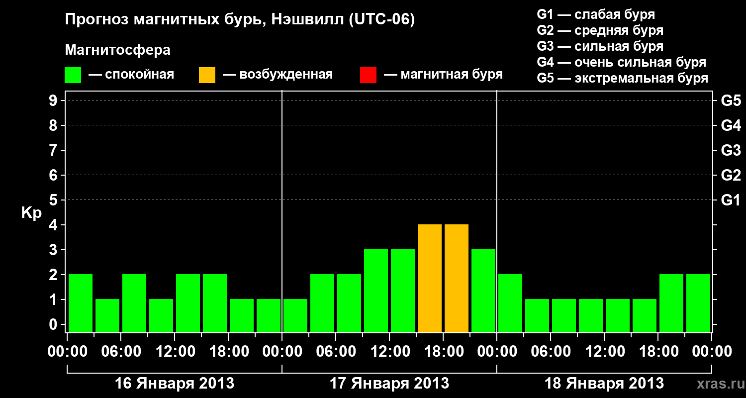 Прогноз магнитных бурь в Нэшвилле — 16 января 2013 года