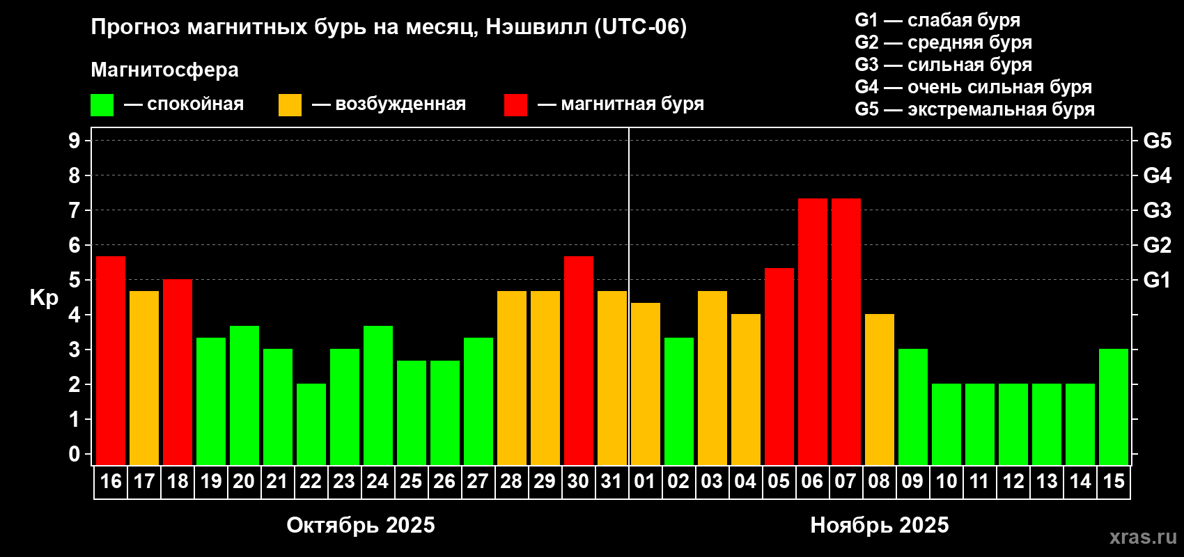 Прогноз магнитных бурь в Нэшвилле — 16 октября 2025 года