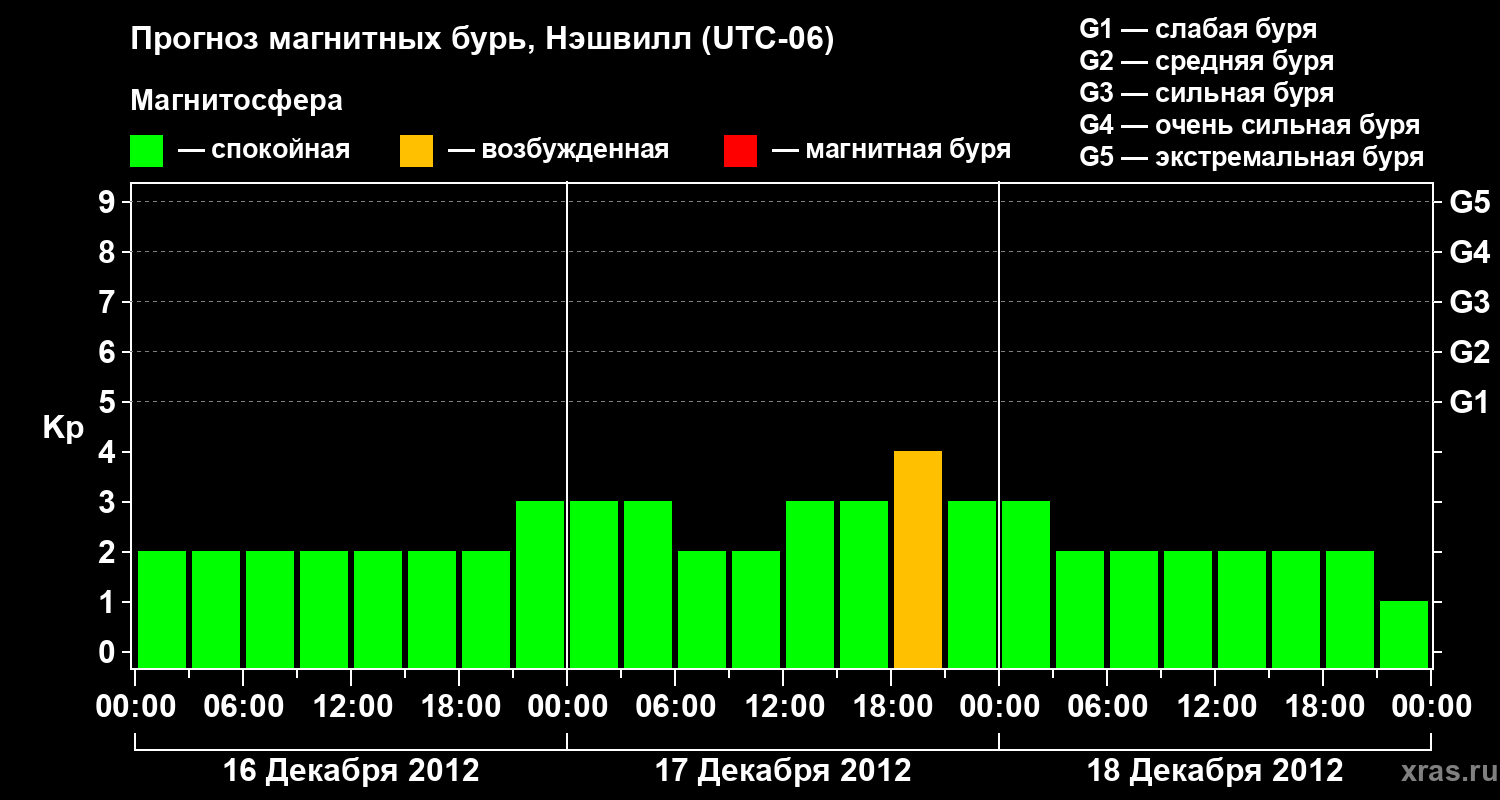 Прогноз магнитных бурь в Нэшвилле — 16 декабря 2012 года