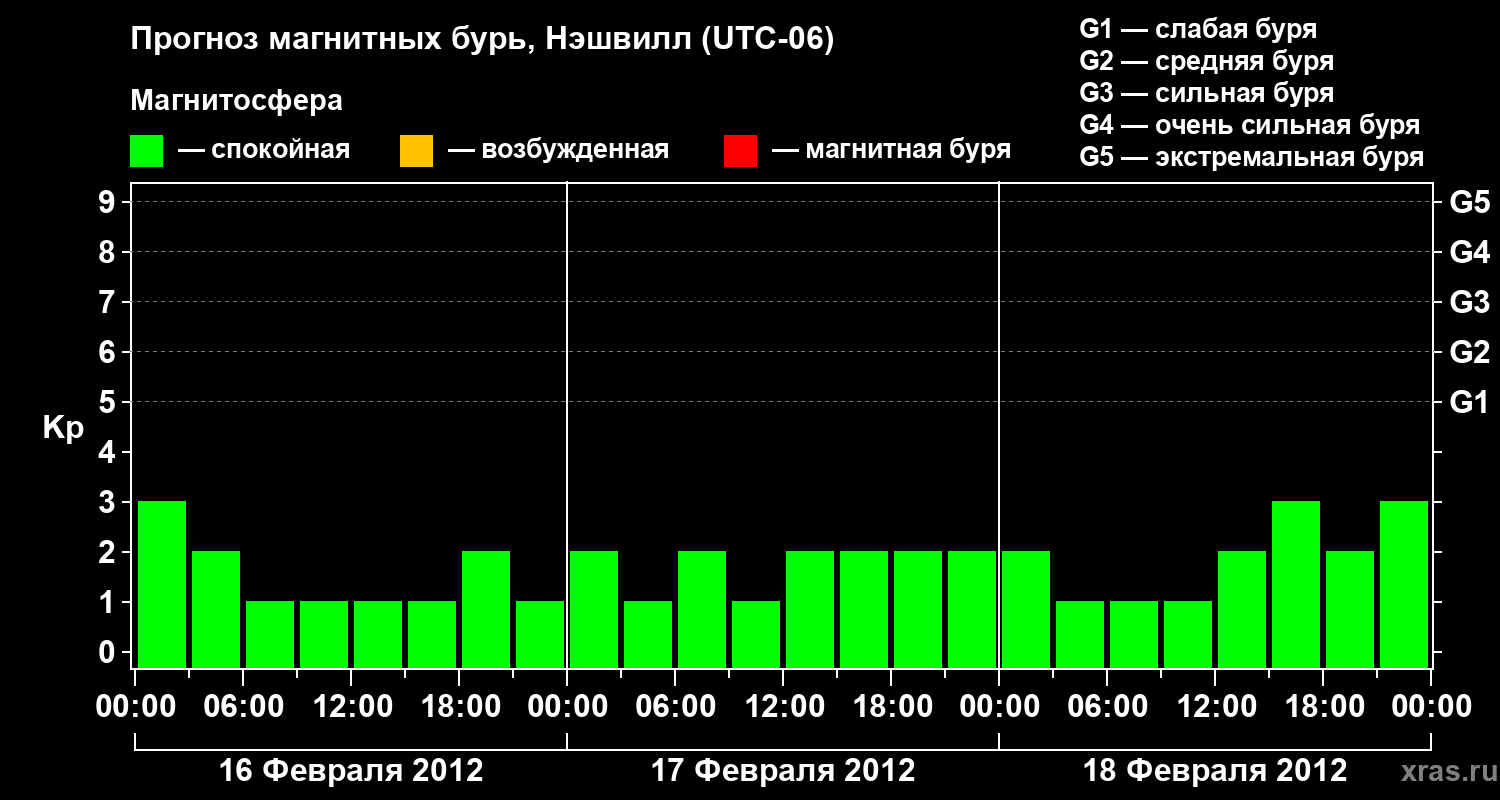 Прогноз магнитных бурь в Нэшвилле — 16 февраля 2012 года