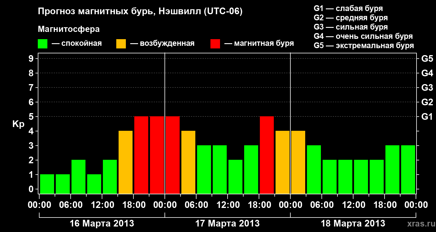 Прогноз магнитных бурь в Нэшвилле — 16 марта 2013 года