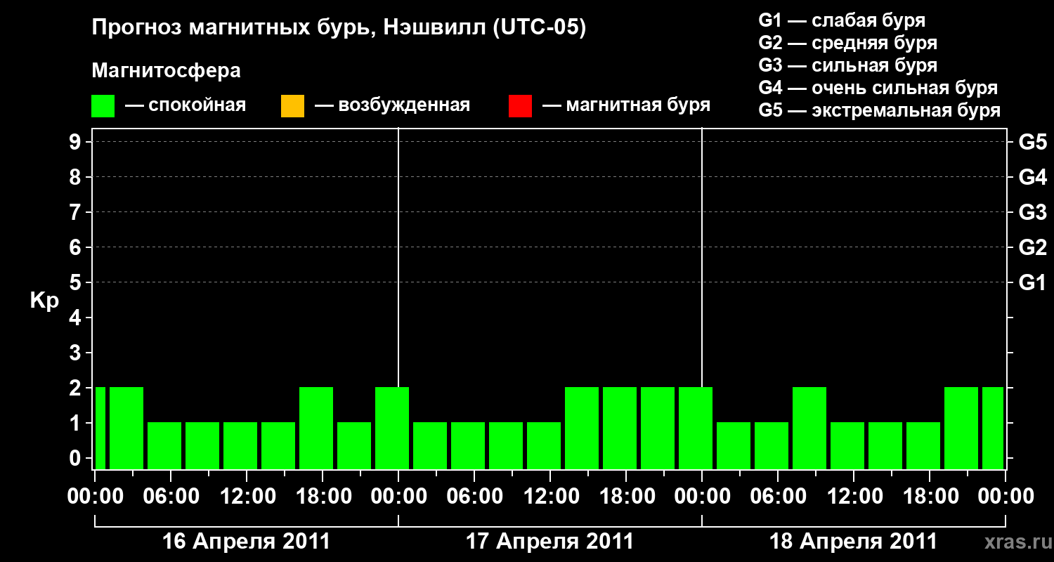 Прогноз магнитных бурь в Нэшвилле — 16 апреля 2011 года