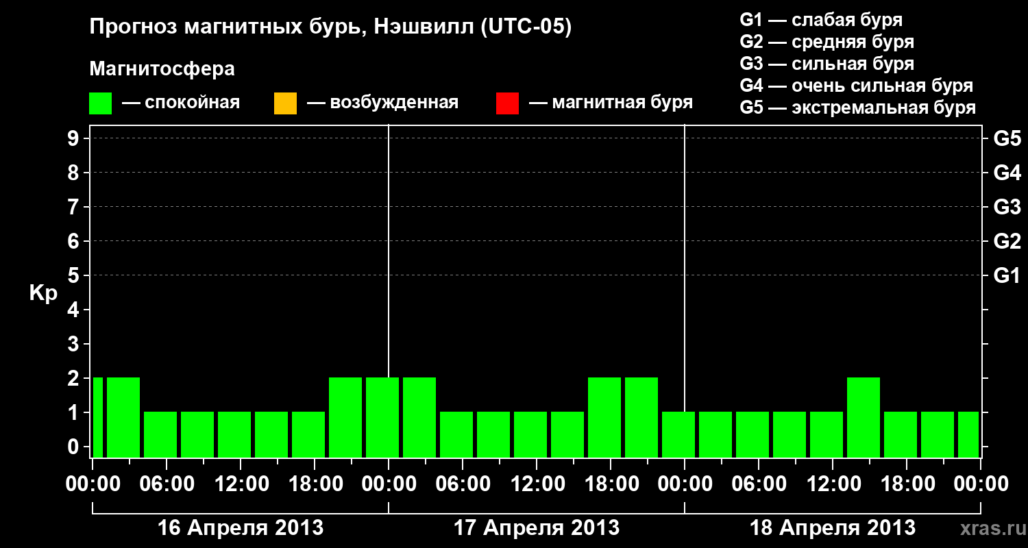 Прогноз магнитных бурь в Нэшвилле — 16 апреля 2013 года