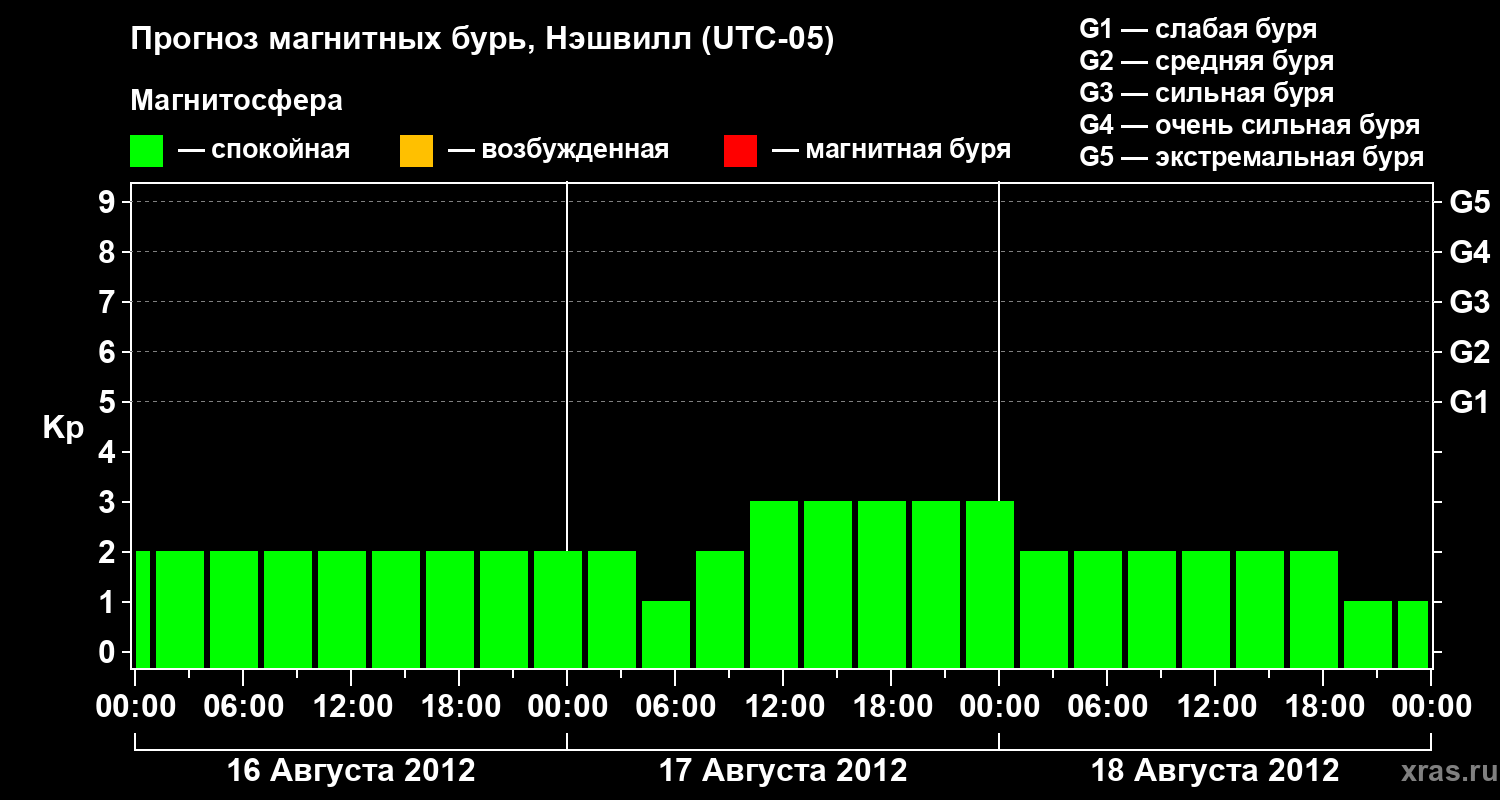 Прогноз магнитных бурь в Нэшвилле — 16 августа 2012 года