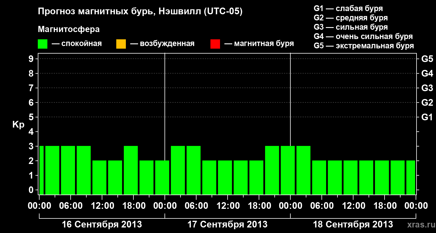 Прогноз магнитных бурь в Нэшвилле — 16 сентября 2013 года