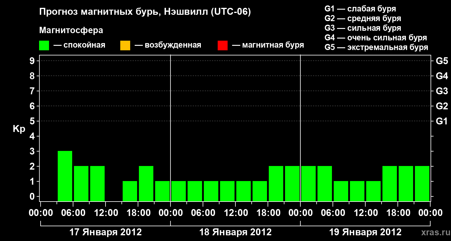 Прогноз магнитных бурь в Нэшвилле — 17 января 2012 года