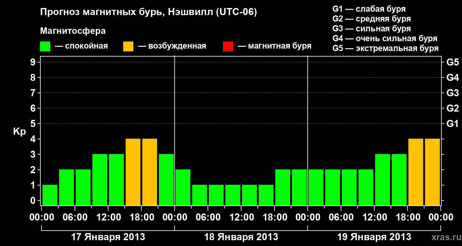 Прогноз магнитных бурь в Нэшвилле — 17 января 2013 года