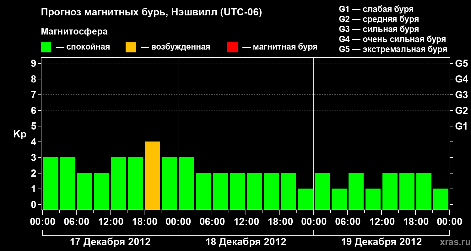 Прогноз магнитных бурь в Нэшвилле — 17 декабря 2012 года