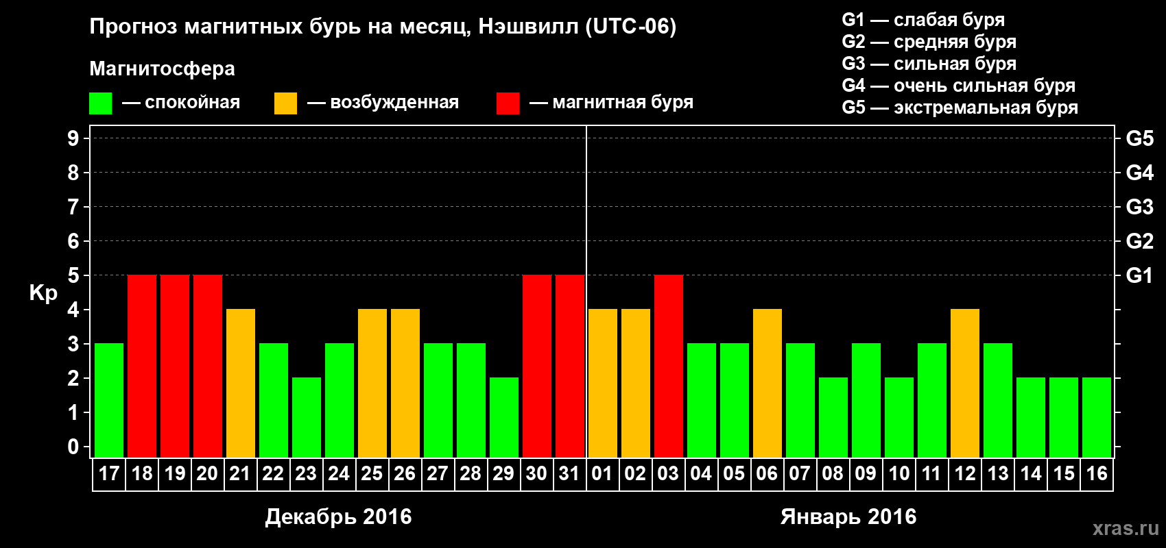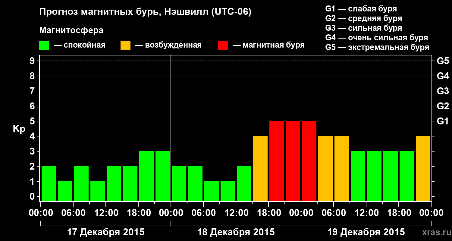 Прогноз магнитных бурь в Нэшвилле — 17 декабря 2015 года