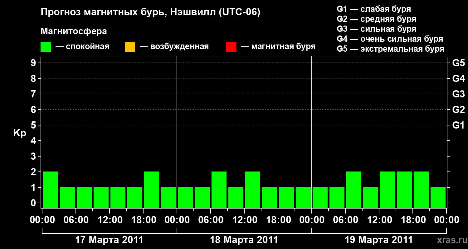 Прогноз магнитных бурь в Нэшвилле — 17 марта 2011 года