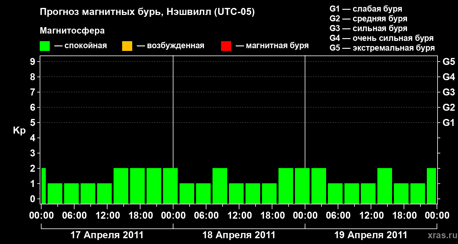 Прогноз магнитных бурь в Нэшвилле — 17 апреля 2011 года