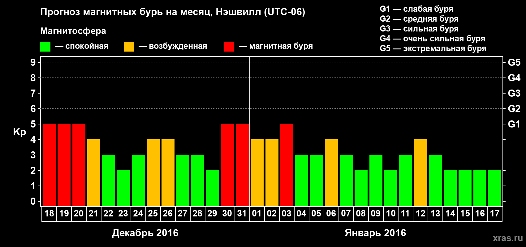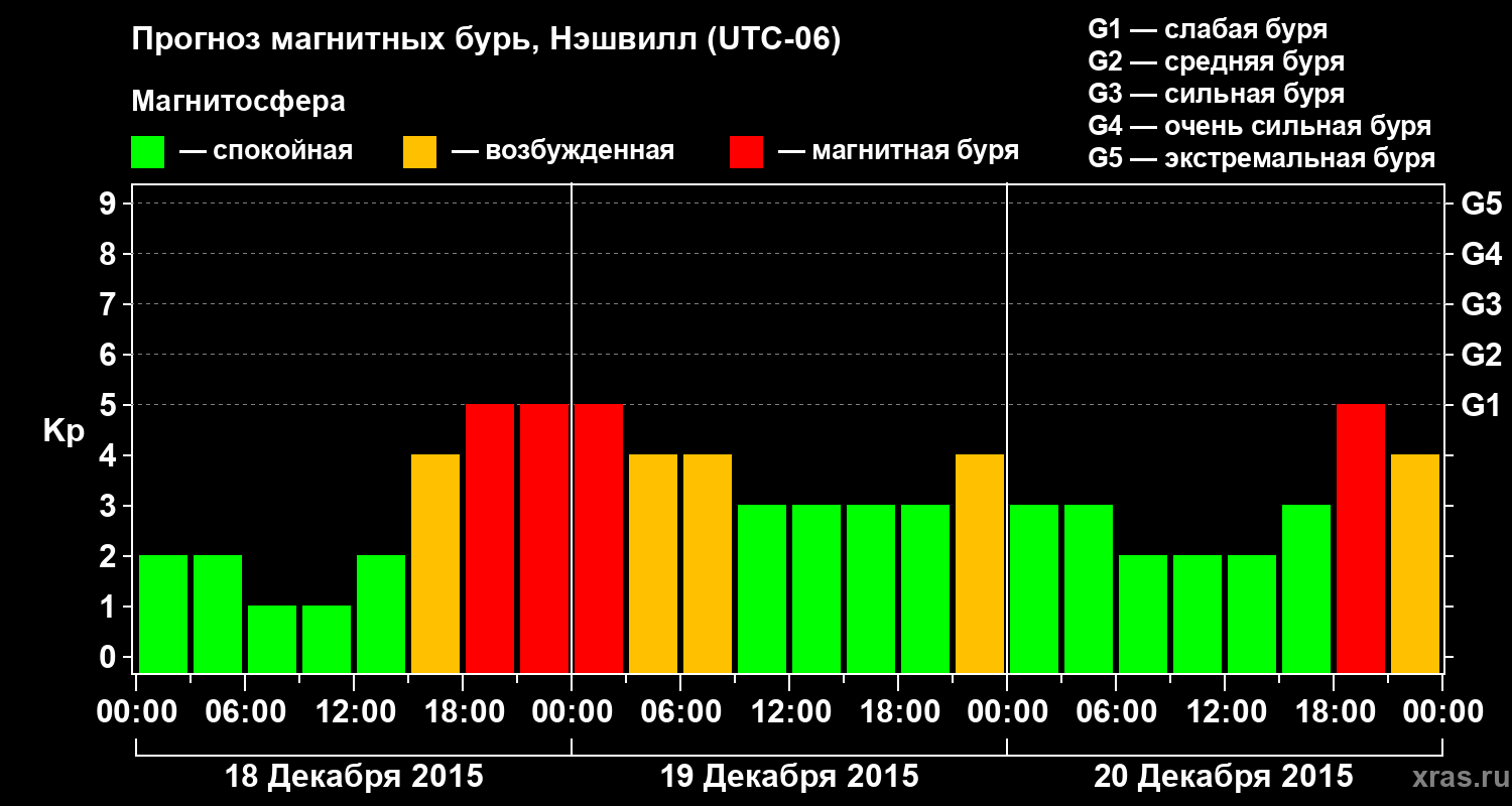 Прогноз магнитных бурь в Нэшвилле — 18 декабря 2015 года