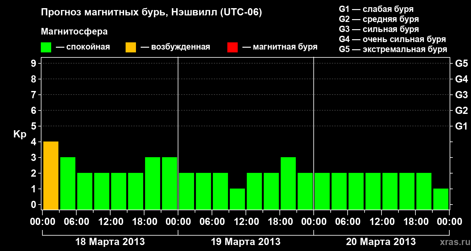 Прогноз магнитных бурь в Нэшвилле — 18 марта 2013 года