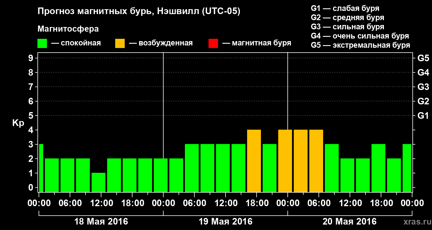 Прогноз магнитных бурь в Нэшвилле — 18 мая 2016 года