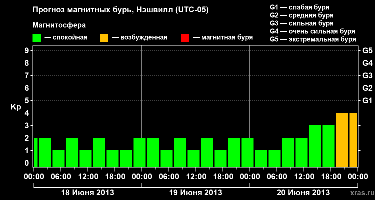 Прогноз магнитных бурь в Нэшвилле — 18 июня 2013 года