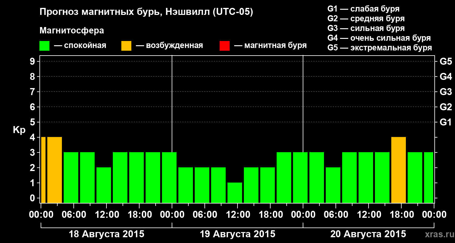 Прогноз магнитных бурь в Нэшвилле — 18 августа 2015 года