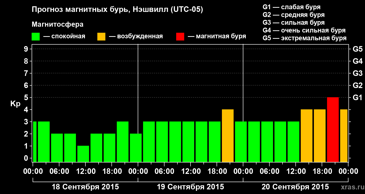 Прогноз магнитных бурь в Нэшвилле — 18 сентября 2015 года