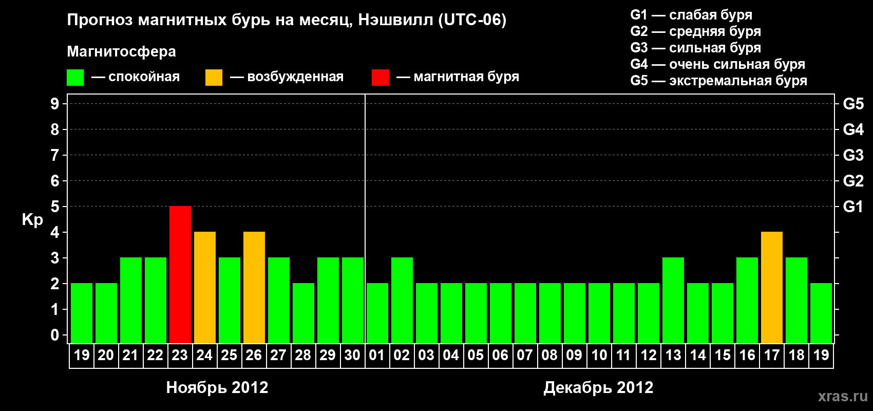 Прогноз магнитных бурь в Нэшвилле — 19 ноября 2012 года