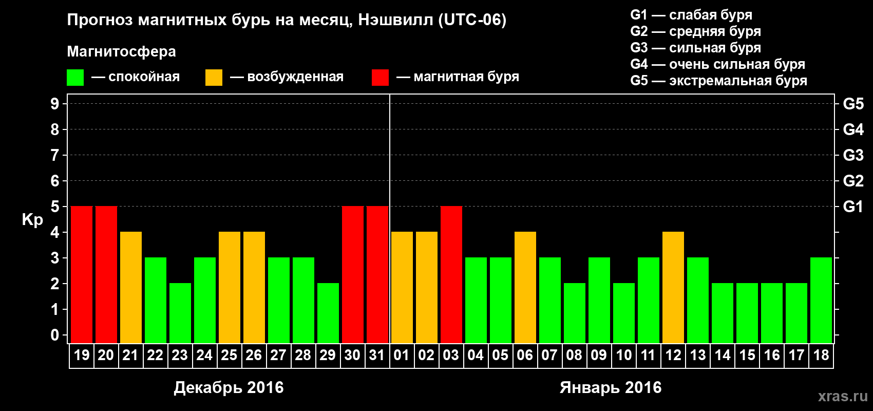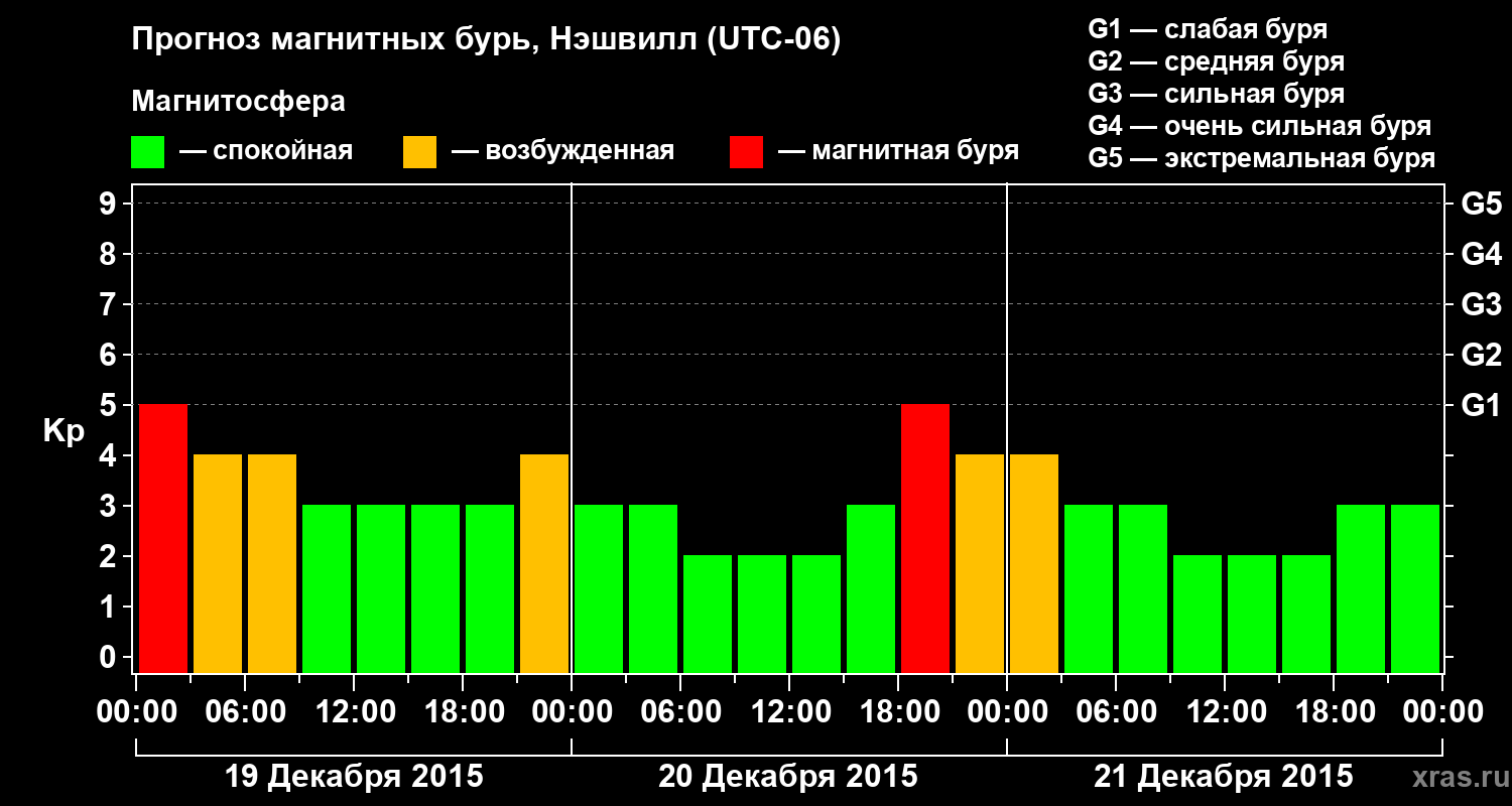 Прогноз магнитных бурь в Нэшвилле — 19 декабря 2015 года