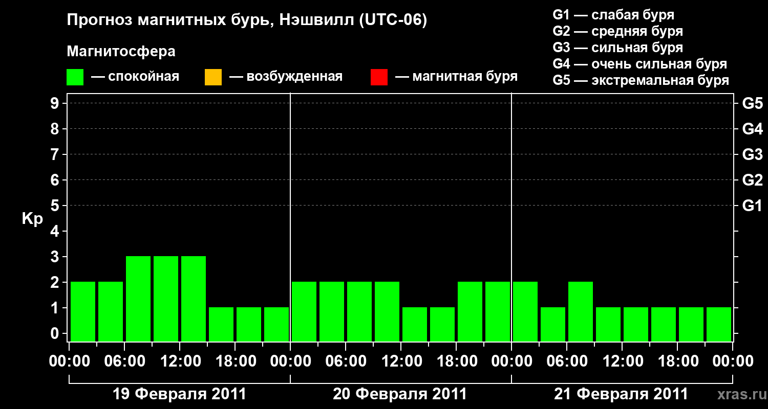 Прогноз магнитных бурь в Нэшвилле — 19 февраля 2011 года