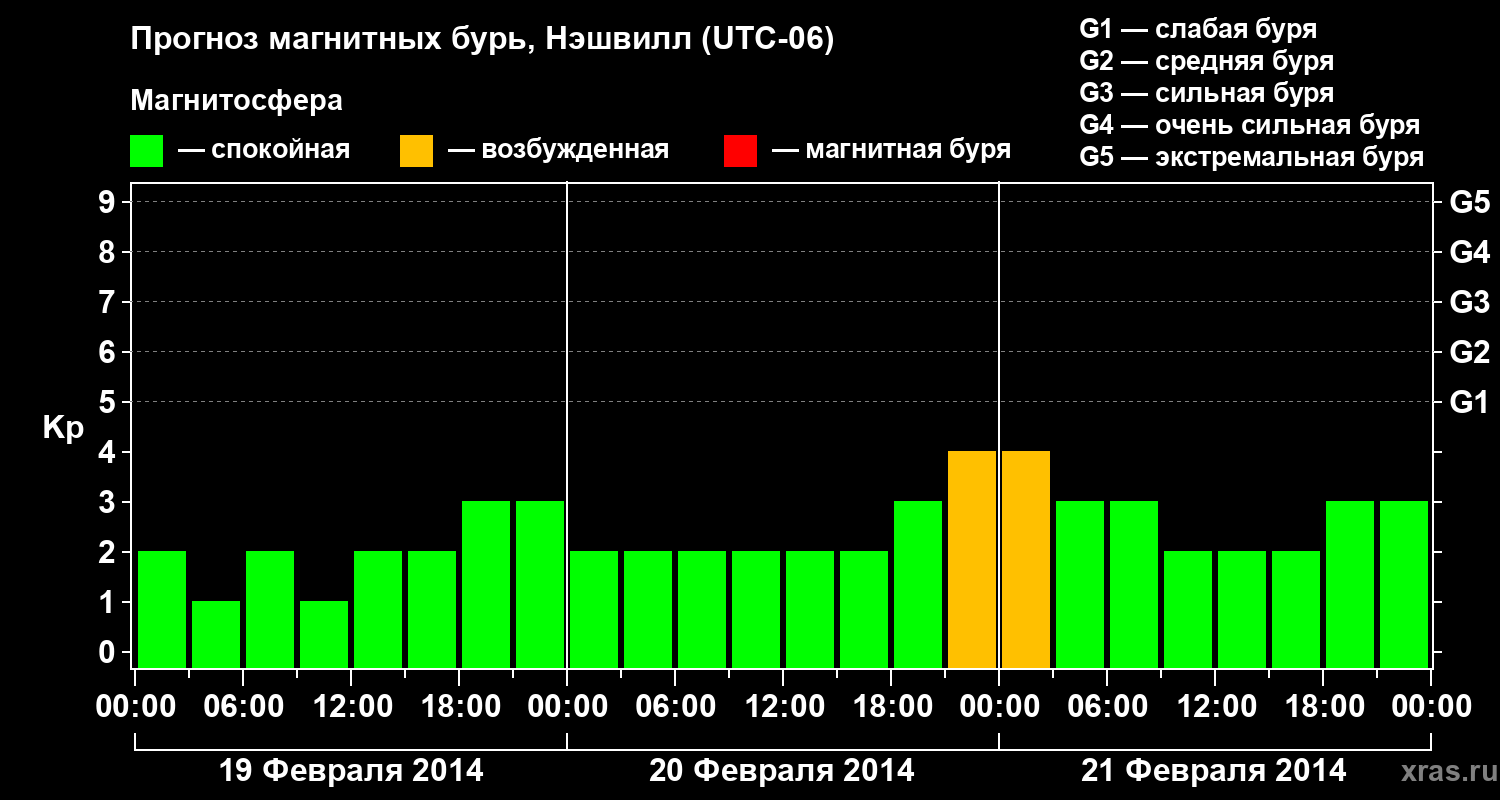 Прогноз магнитных бурь в Нэшвилле — 19 февраля 2014 года