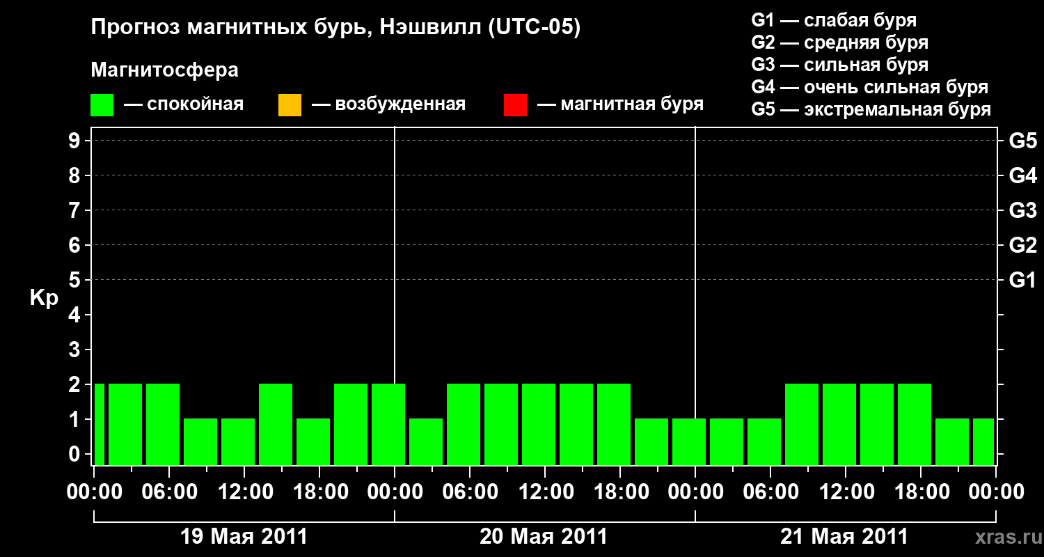 Прогноз магнитных бурь в Нэшвилле на 19 мая 2011 года