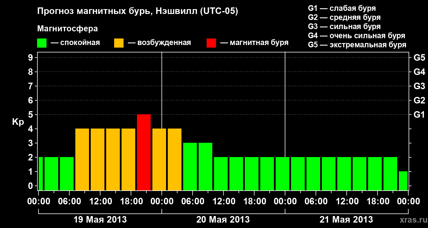 Прогноз магнитных бурь в Нэшвилле — 19 мая 2013 года