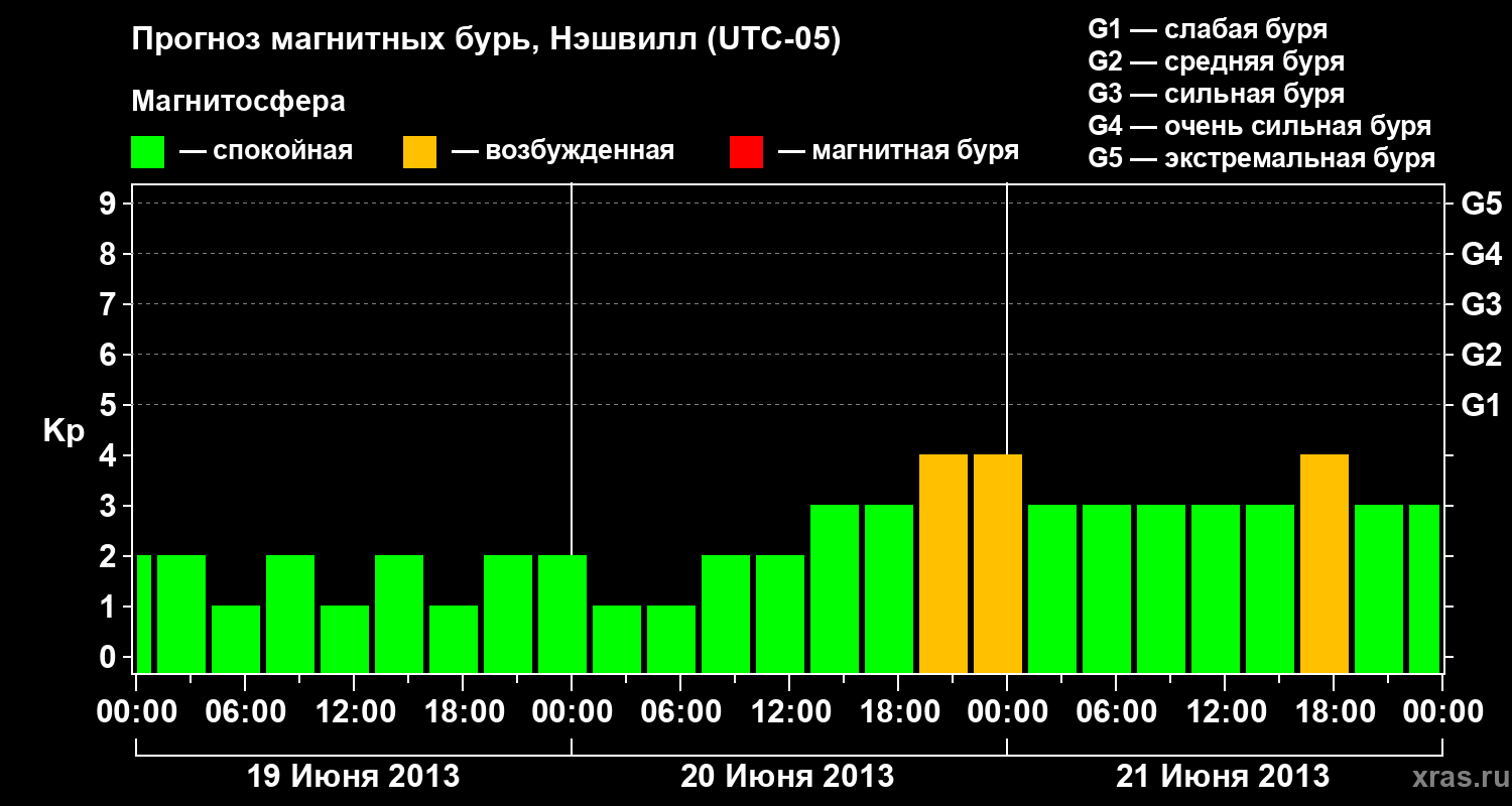 Прогноз магнитных бурь в Нэшвилле — 19 июня 2013 года