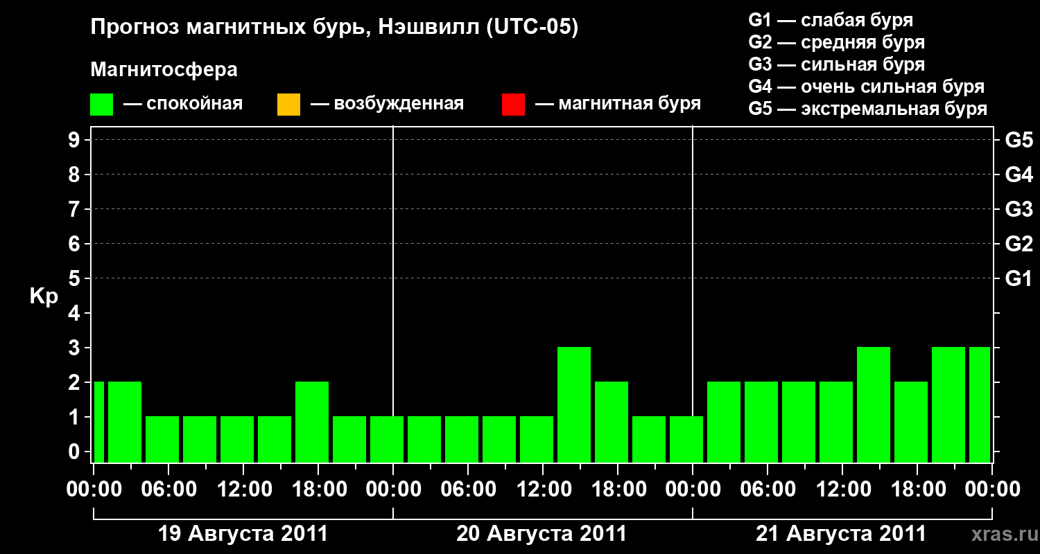 Прогноз магнитных бурь в Нэшвилле — 19 августа 2011 года
