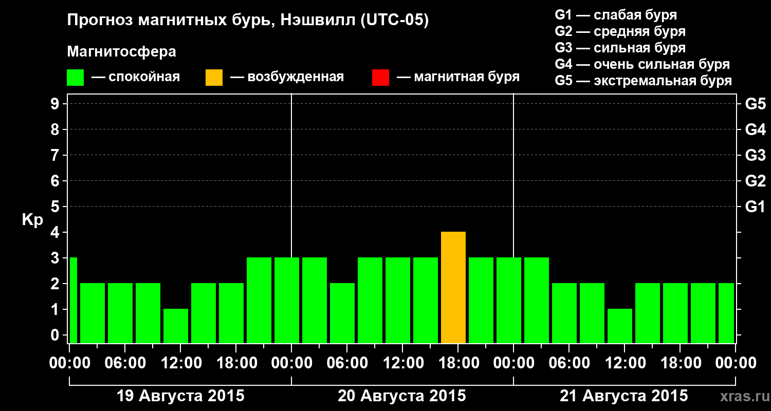 Прогноз магнитных бурь в Нэшвилле — 19 августа 2015 года