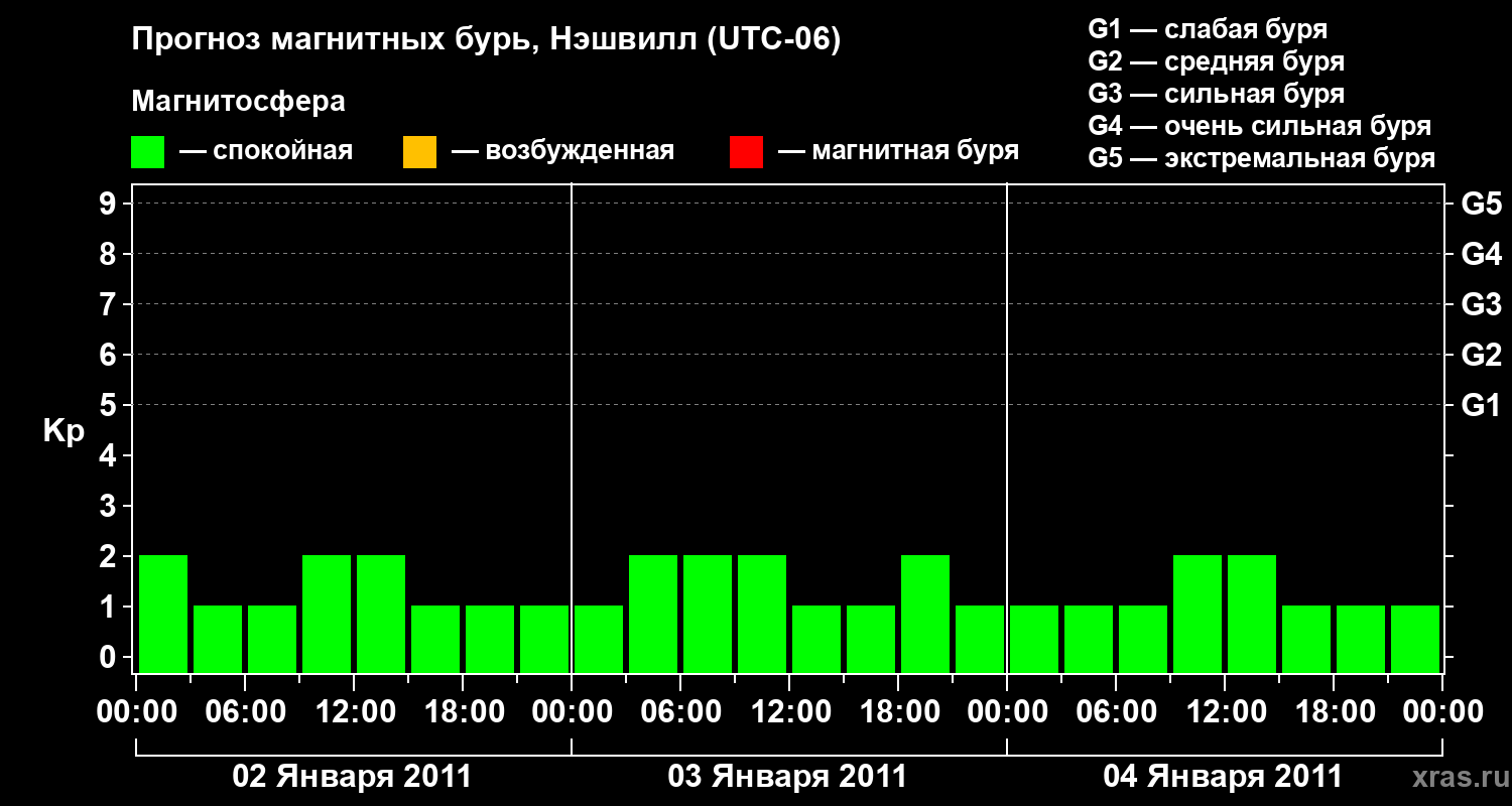Прогноз магнитных бурь в Нэшвилле — 2 января 2011 года