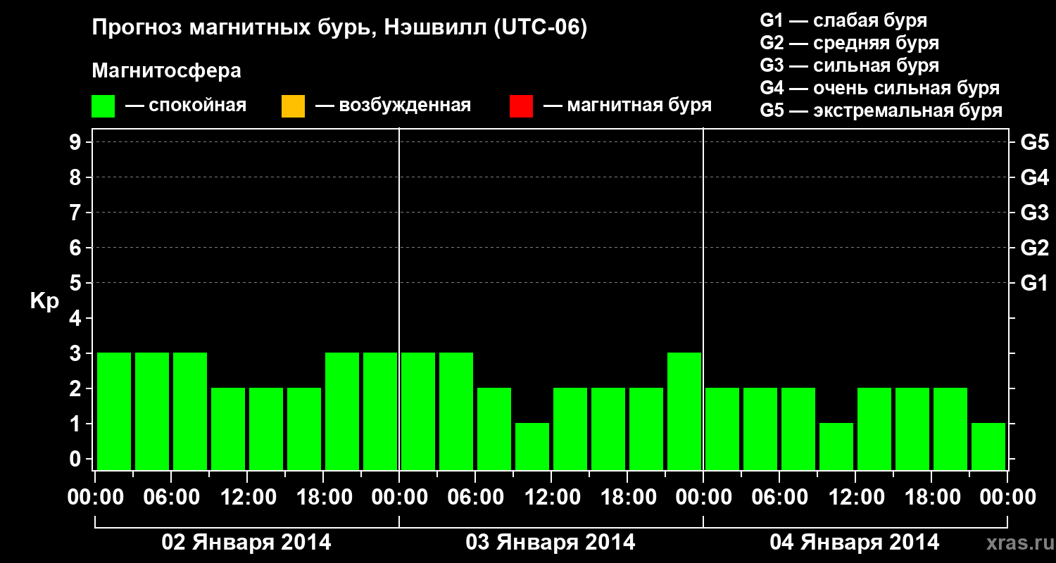 Прогноз магнитных бурь в Нэшвилле — 2 января 2014 года