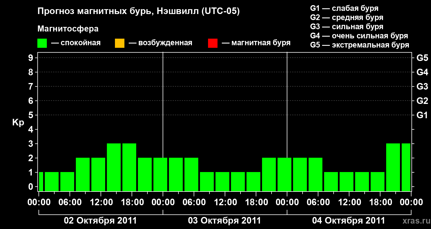 Прогноз магнитных бурь в Нэшвилле — 2 октября 2011 года