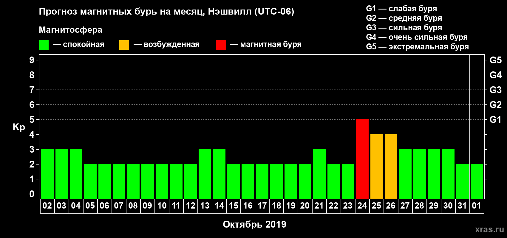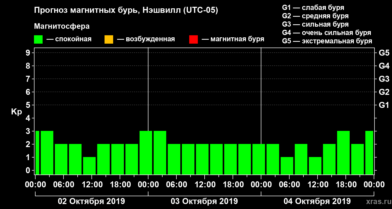 Прогноз магнитных бурь в Нэшвилле — 2 октября 2019 года