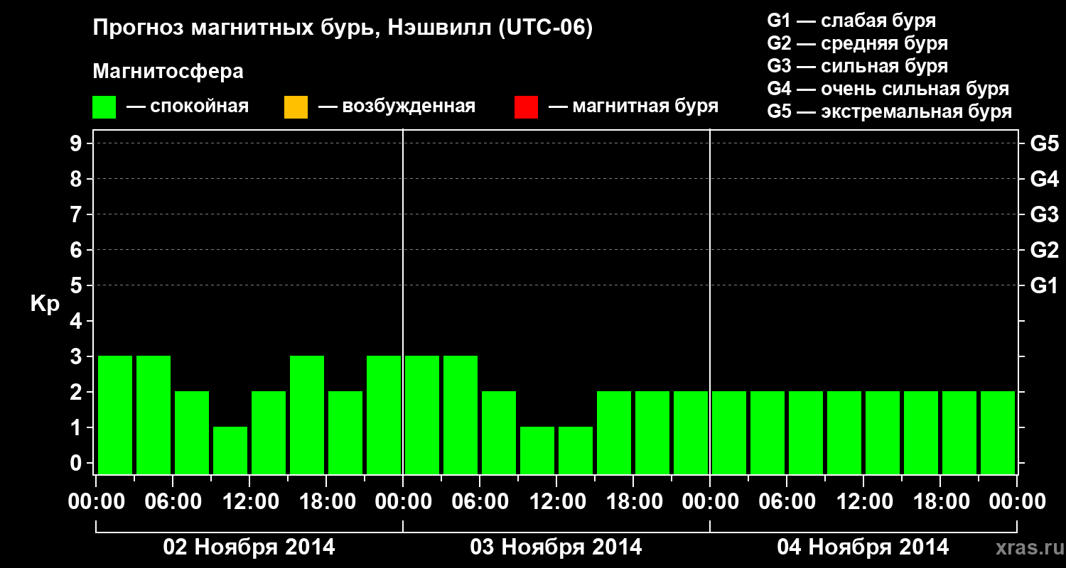 Прогноз магнитных бурь в Нэшвилле — 2 ноября 2014 года