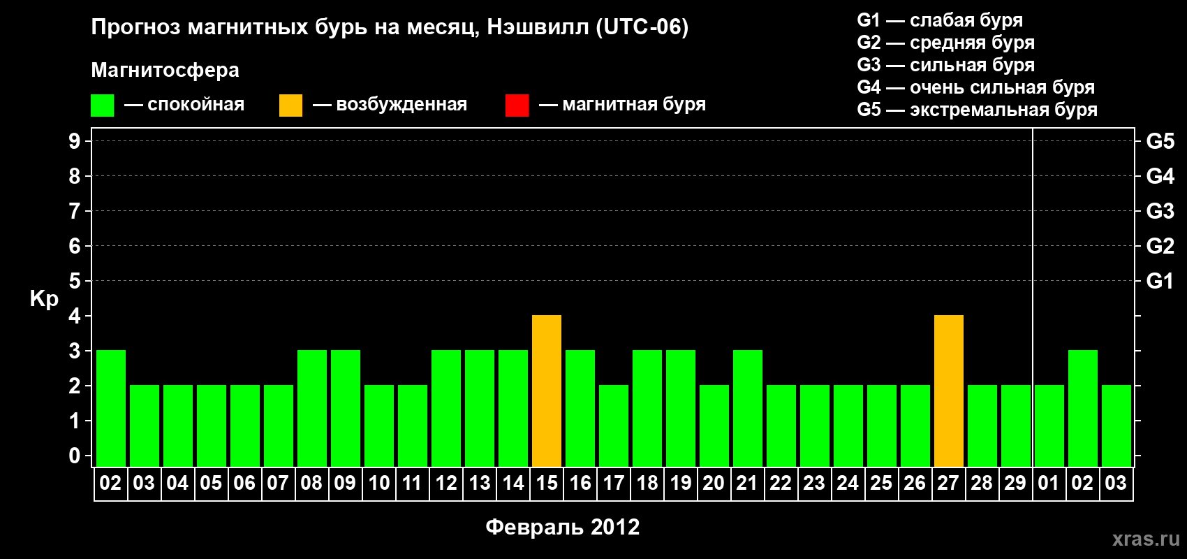 Прогноз магнитных бурь в Нэшвилле — 2 февраля 2012 года